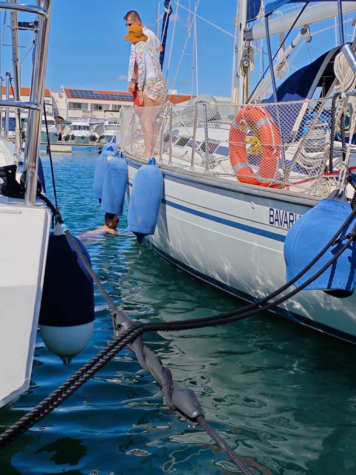 Időben megérkeztünk Saliba és szépen kikötöttünk. Ismernek már, így nekünk mindig jár marinero és parti segítség a városparti kikötéshez.