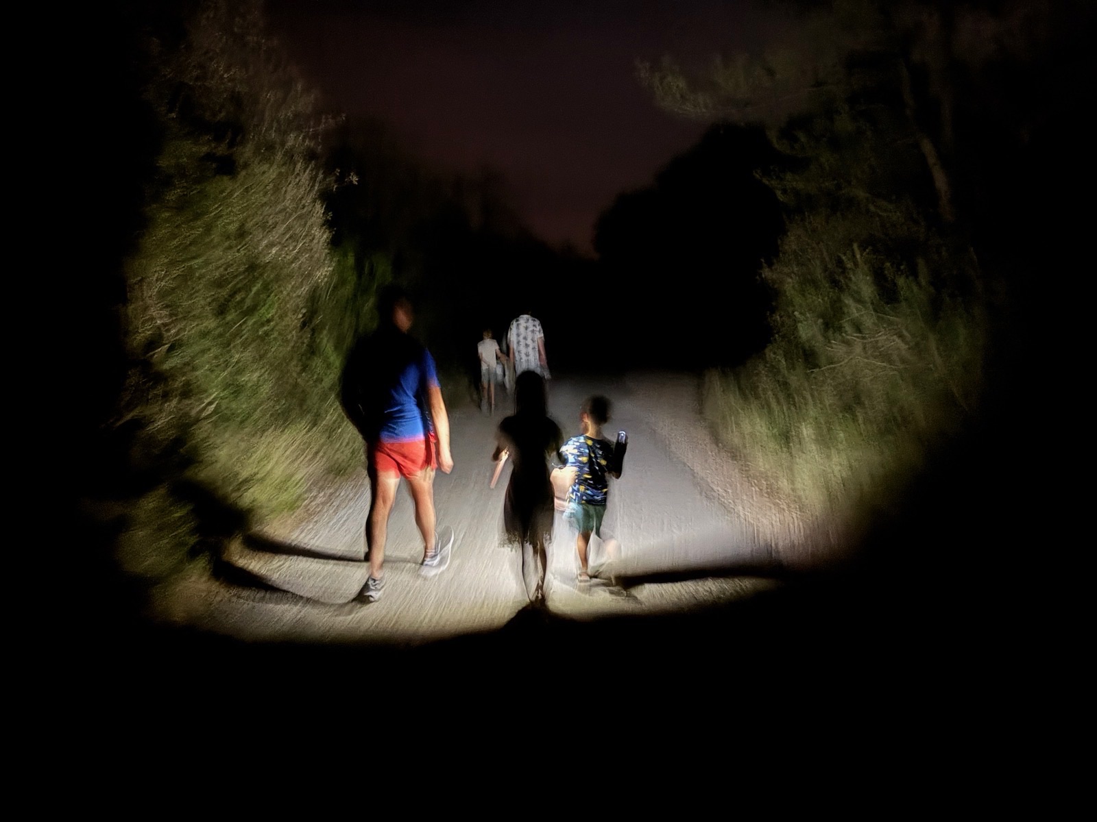 Innen mindig élvezetes visszamenni a hajónkhoz. Kb 3km gyalog egy aszfalt úton, de nincs közvilágítás. Nagyon élvezték a gyerekek (is).
