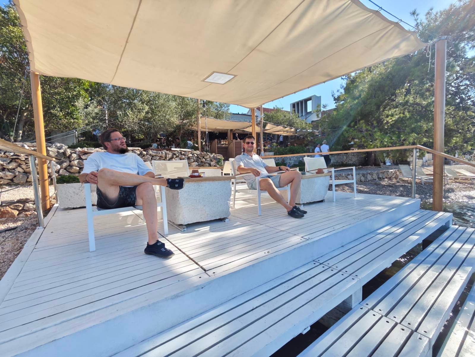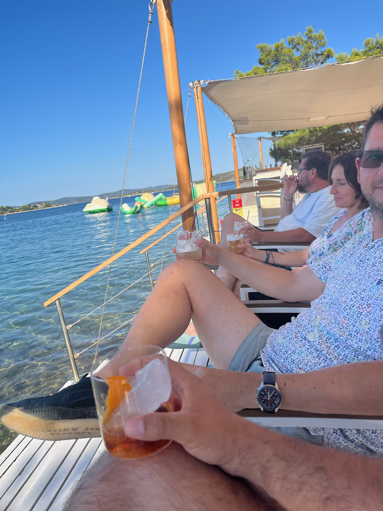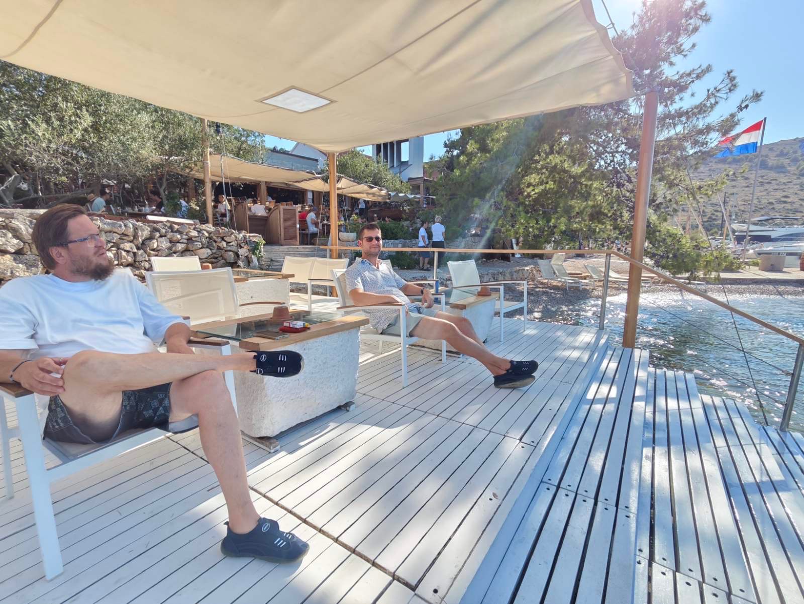 De ezúttal ez jól jött: Péter barátomnak ma van a születésnapja! Miután bevásároltunk és a család a fedélzeten megköszöntötte, hárman fiúk kiültünk a hajónk mögött kb. 15m-re lévő bárba ünnepelni. Jól sikerült... én teleporttal jutottam el a reggeli ébredéshez 😂