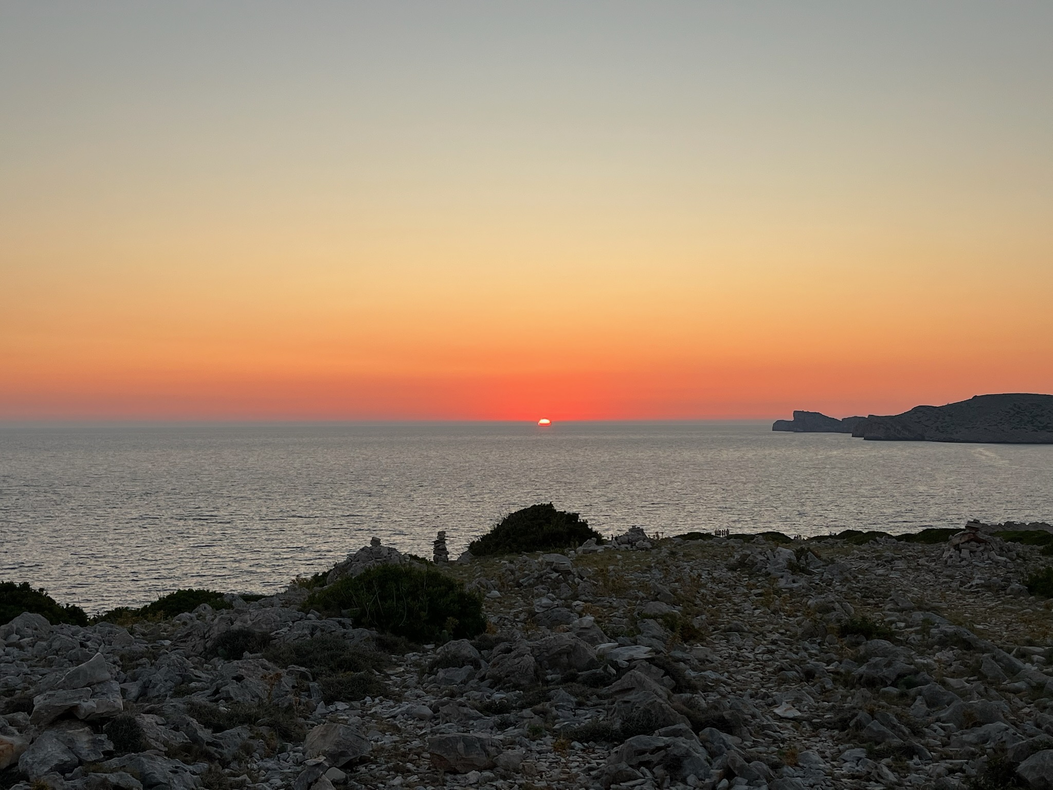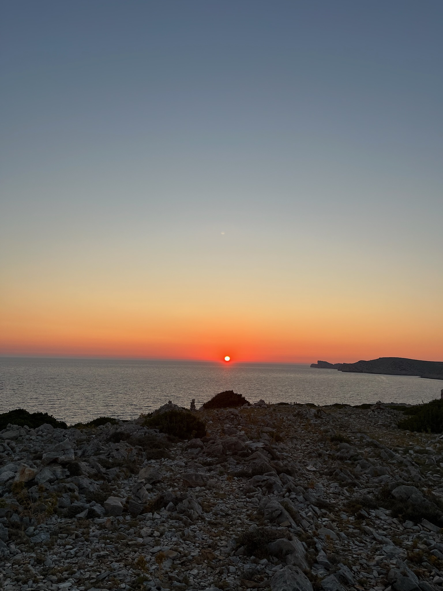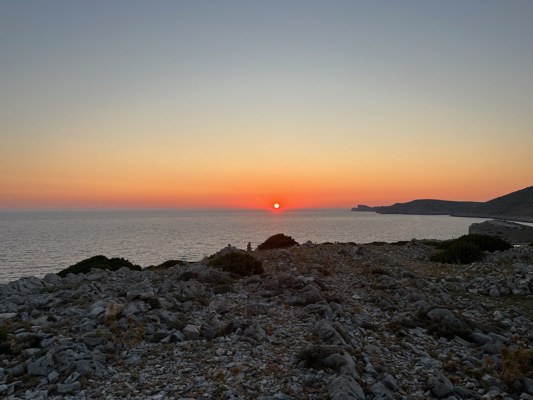 Könnyen fel lehet sétálni a sziget tetejére a köveken és a hegyikecskék között, ahonnan mindig elképesztően szép látványt nyújt a napnyugta.